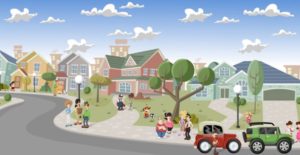 直訳すると「あなたは、だいたい近所にいる」ですが、冒頭のようなシチュエーションはしばしばありますから、この表現は使えますね。